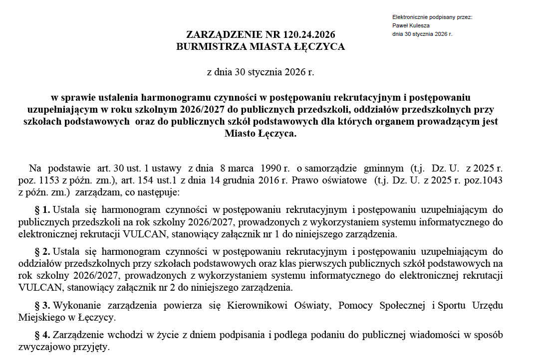 Zarządzenie nr 120.24.2026 Burmistrza Miasta Łęczyca z dnia 30 stycznia 2026r.